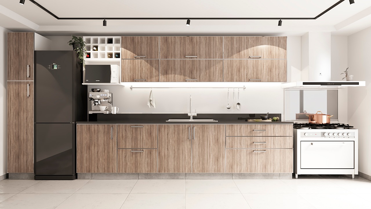 Gabinetes melamina MDP blanca 18 mm. Frentes melamina MDP 18 mm, según catálogo de colores, con cantos de aluminio en todo su perímetro y punteras cromadas. Manija Barral N° 24 de aluminio anodizado de 192 mm o tirador tipo Cazoleta en terminación Plata Vieja o Bronce Viejo. Precio A Medida.