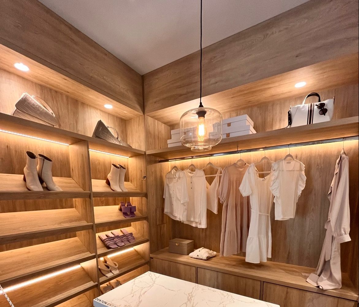 Interior de melamina, cantos pvc, barrales cromados, cajoneras guías telescópicas, opcional con cierre suave. Precio A Medida.